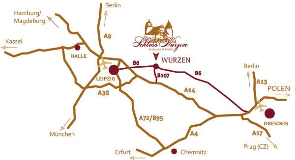 Von Wurzen erreicht man mit dem PKW in kurzer Zeit sowohl die Messestadt Leipzig als auch den Flughafen Leipzig/Halle.